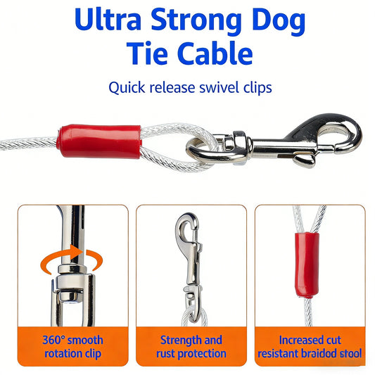Heavy-Duty Dog Tie Out Cable - Stainless Steel Swivel Leash for Outdoor Use